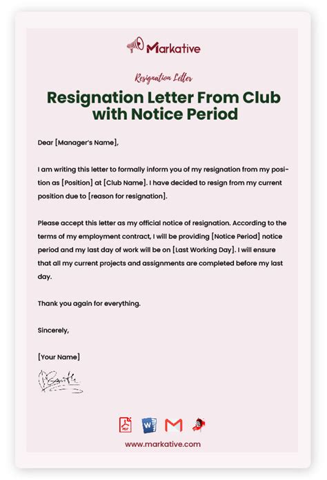 Sample Resignation Document From Club Books